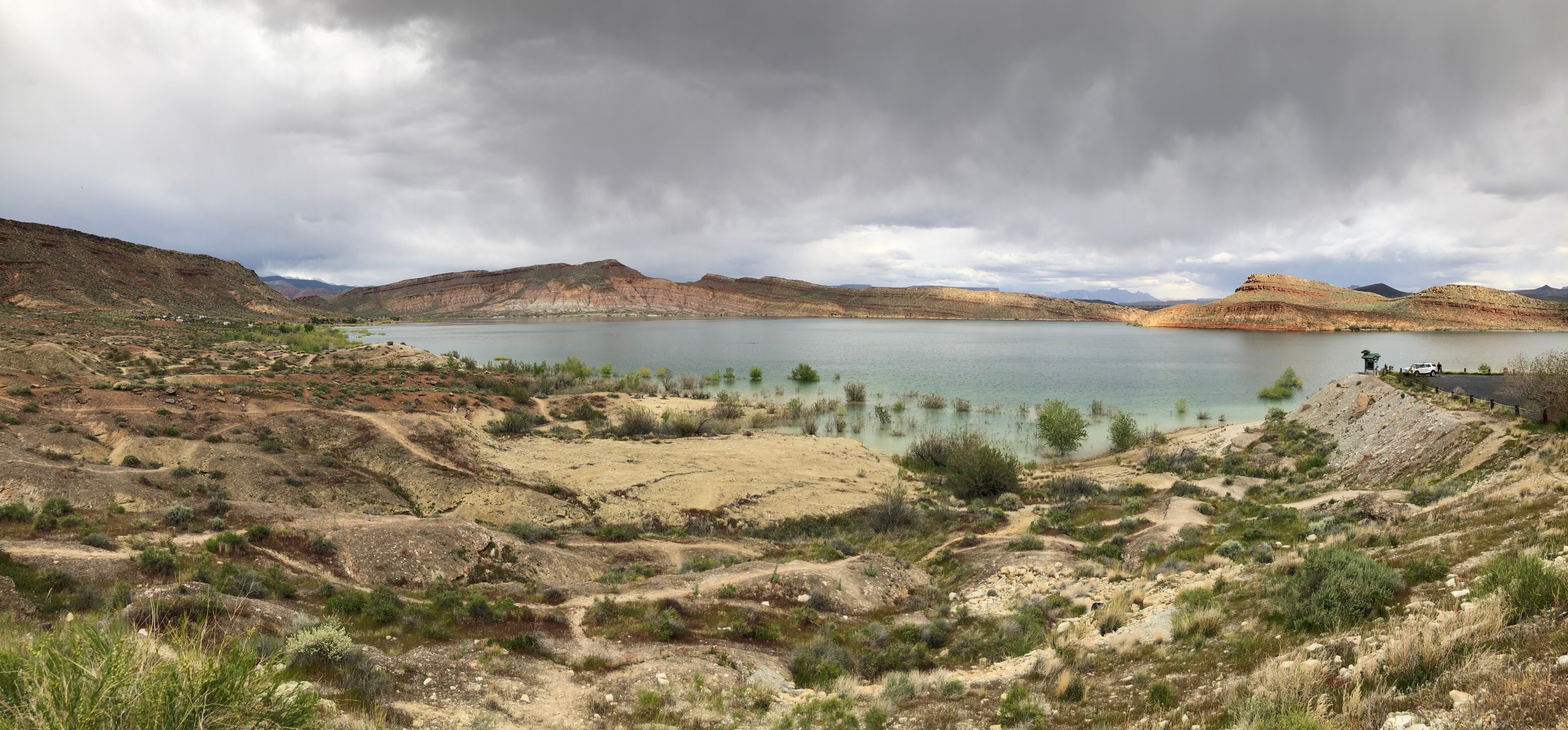 In order to supply the St. George region with water for cultivation and cooking, Quail Creek Reservoir was finished in 1985. Virgin River water is diverted and used to transfer the majority of the volume that enters the reservoir. Natural tributary Quail Creek flows from seasonal snowmelt, desert storm and springs that feed the lake year-round, sometimes at flash flood levels!